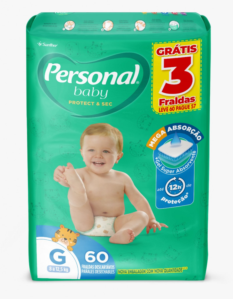Novas embalagens das fraldas Personal Baby Protect & Sec que carinhosamente foram desenvolvidas para atender dos nossos consumidores que buscam qualidade, conforto e proteção para o seu bebê. A fralda Personal Baby Protect & Sec possui camada externa respirável e tecnologia 5 camadas que permite muito mais absorção e ajuda a manter a pele mais sequinha e saudável com até 12 horas de proteção.